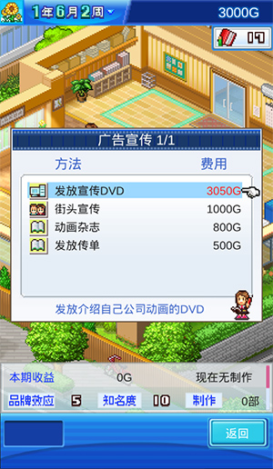 在动画制作物语游戏画面右上方的金钱下方可以看到资料点数,通过制作或修复失败画面都可以累积,有了足够的资料点数也就可以进行升级社员和挑战事件啦。