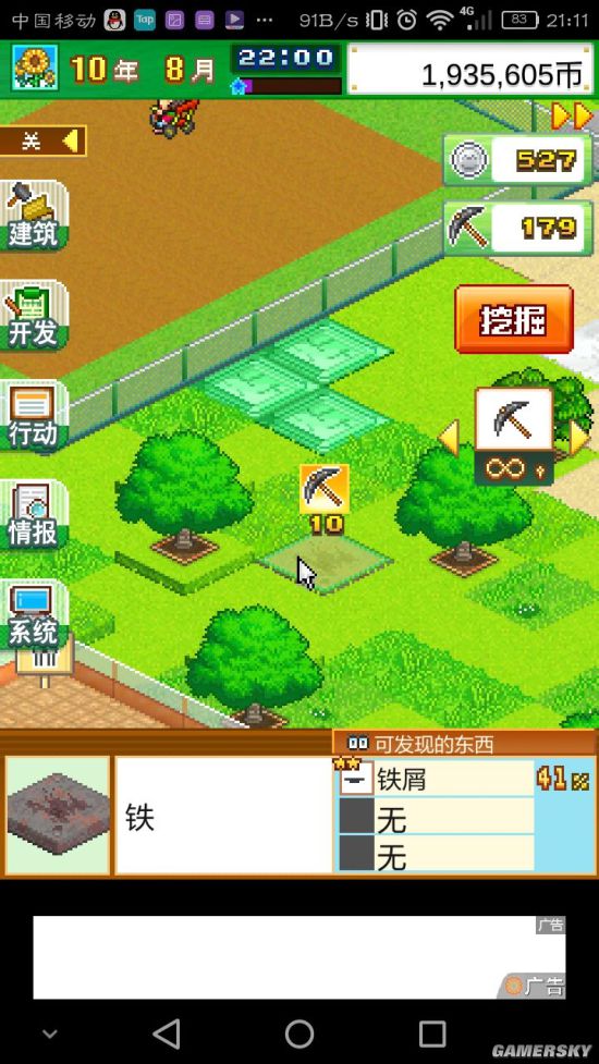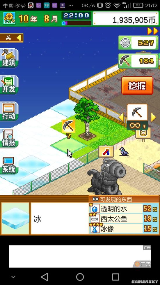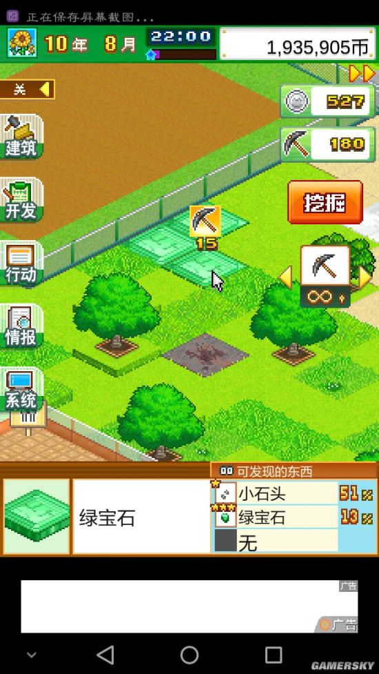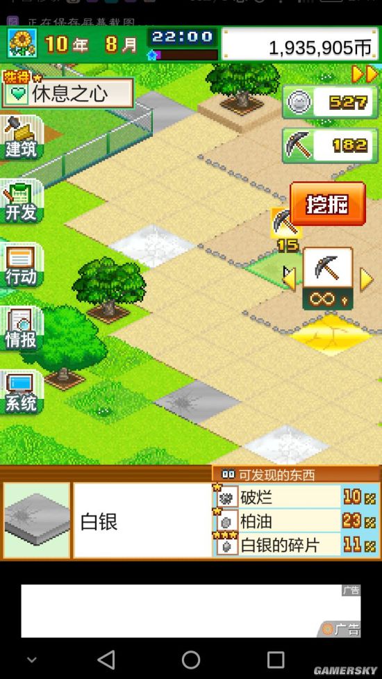 关于挖掘在你大概的建设了一下公园,大臣给你新区域之后,助手会扔给你几个铁镐,点击公园以外的区域就能挖材料。材料一个月后会重新长出来,但是建造区域后就没办法继续挖掘了。大家计划一下,心里有个底,不要乱挖。另外再说一点,一开始的地皮周围那一圈石头,都挖掉之后会出现扩地的研究。
