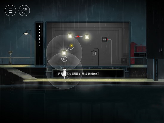5、将下方的灯芯吸收回来,走到右侧传递到特殊的灯里,然后继续向前到达第四个场景。