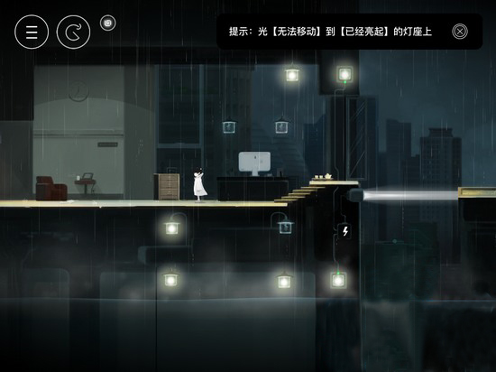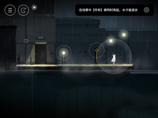 雨纪正式版是一款休闲解谜游戏,游戏画风精美、音乐动人。游戏讲述了一名女孩来到一个被雨水淹没的城市,她用手中小小的光,点亮灯和石碑,让雨水退去,拯救这座城市。玩家扮演游戏中的神秘女孩,控制场景中不同的光来操作机关,让雨水退去,拯救城市。随着城市中的雨水逐渐退去,她的真实身份也将慢慢展现在你的面前。伴着淅淅沥沥,逼真又柔和的雨声,玩家控制少女开始在被水淹没的城市中穿行,少女拥有操控光源的能量,沿途少女点亮石碑,点亮基柱,褪去洪水,直到最后一颗化为光源启动城市的引擎,返回了安乐的永无乡。本站提供的是破解版,可免费购买后续章节,请玩家尽情的玩耍吧!