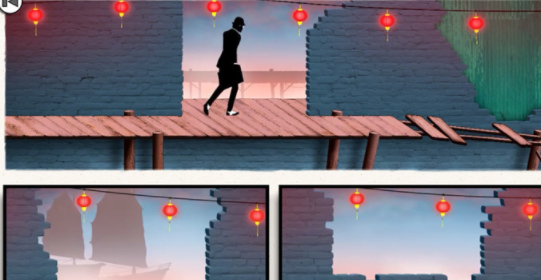 本作为剪影风格,简约却不简单,背景融入中国元素,这种港口总是会第一时间想到老上海,人物细致的轮廓给人无限的想象,凸现了剧情的同时很有代入感,虽看上去冷酷,却在黑白之中透露出一丝温情