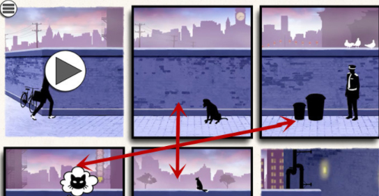 一个有趣的作品,不敢说惊艳,却相当有创意,以连环画的形式分镜表现剧情,通过拖动、旋转区块改变框架的顺序来推进故事的发展,如同游戏描述那样:更改顺序,改变结局,游戏内容具有不错的可玩性