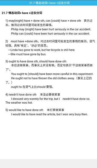 同时grammar官方版软件采用了多媒体辅助学习的方式,提供了丰富的学习资源。用户可以通过音频朗读功能听到准确的发音和语调,提升听力和口语表达能力。除了传统的学习模式,它还提供了互动式练习和测试功能。用户可以通过完成练习题目来检验自己的掌握程度,并即时获得反馈和解析。感兴趣的小伙伴快来本站下载吧!!!