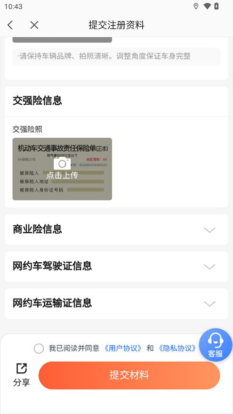5、有车的车主用户可选择其他加盟方式,上传身份证信息、驾驶证信息等待平台审核。