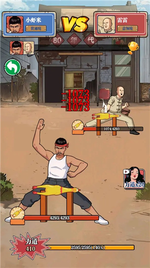 3、游戏设有多种有趣对手,挑战他们,精进技能,成为劈砖界的领军人。