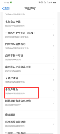 5、然后选择城市,软件支持江苏省内各地区个体户开业申请,需要先选择设区市。