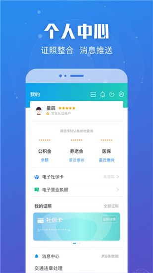 个人中心功能将所有重要证件和执照进行数字化整合,用户可以随时查看和管理自己的政务文件。同时,通过实时消息推送,确保用户及时接收到任何政策变更或申请状态更新的通知。