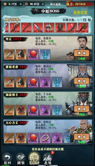 1、地图BOSS:利用地图的传送功能,玩家可以快速前往各个BOSS地点进行挑战。