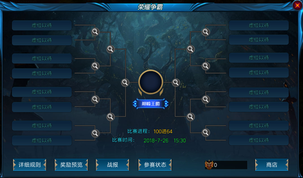 冠军获得特殊称号,奖励争霸点数、战功和荣耀点数,可在商店兑换