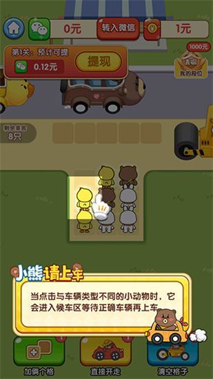 新颖独特的消除玩法,小手一点,同色小熊瞬间集结上车,成就感满满!