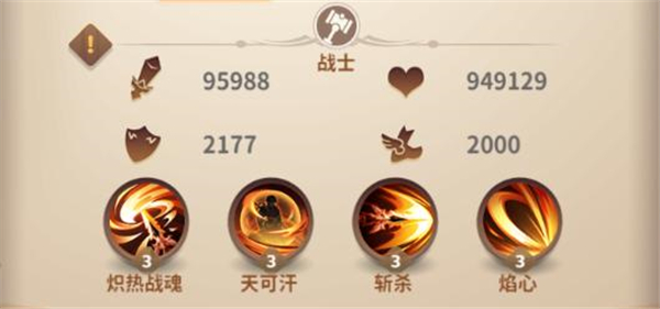 被动技能2:炙热领袖,能够能加生命、攻击、暴击伤害。