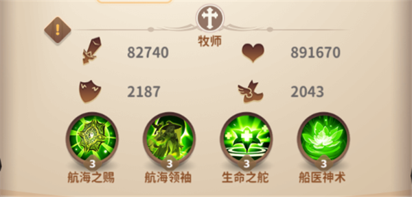 被动技能2:船医神术,能够提高治疗效果。