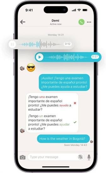用户可以在这里与母语人士进行实时对话,不仅能提升语言技能,还能深入了解不同国家的文化。APP中还提供了丰富的聊天功能,除了日常使用的文字聊天,也可以使用语音和视频等方式进行沟通,而且内置翻译和文本矫正工具,可以帮助大家更顺畅地进行交流学习,如果你正准备学习外语,不妨来下载Tandem交友软件体验一番。2、当你找不到合适的单词和外国人聊天时,app内建翻译功能帮助你完成句子或者翻译对方传送的信息。
