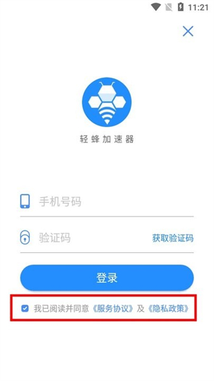 2、勾选【我已阅读并同意】,输入你的手机号、验证码完成登录。