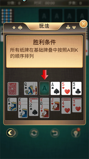②胜利条件:所有纸牌在基础牌叠中是按照A到K的顺序排列。
