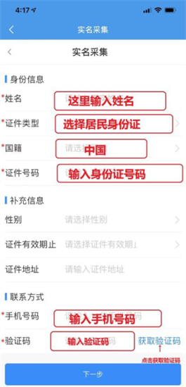 4、在打“*(必填)”的方框内填写您的个人信息,填写完毕点击【下一步】按钮。
