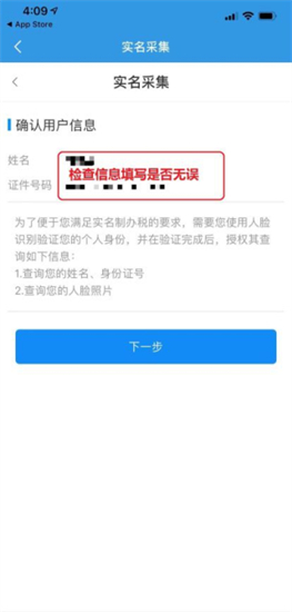 6、输入您的身份信息,点击确认,系统校验数据合法性和真实性,然后进行下一步刷脸验证。