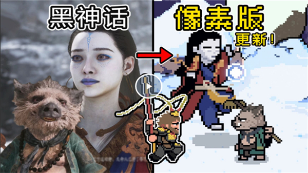 为了让各位玩家不需要强大的电脑配置也能够玩到火爆的黑神话悟空游戏,这里小编带来了黑神话悟空像素版电脑版,这是B站大神“火山哥哥”根据原版游戏打造的。本作完美复刻了原著的诸多经典故事剧情与玩法机制,包括人物角色与武器造型也都尽可能的进行了还原,只为带给您原汁原味的玩法体验。同时游戏在原玩法基础上进行创新,加入了不少新颖的创新元素与玩法,如喝酒功能和定身术等等,致力于带给您更多战术选择和打斗乐趣。多个不同的地图场景,支持玩家任意探索,寻找隐藏的道具和秘密,随着玩家游戏进程推进,我们还可解锁更多全新区域。
