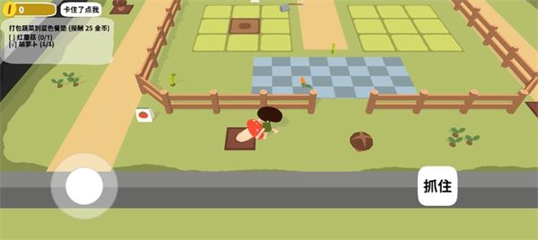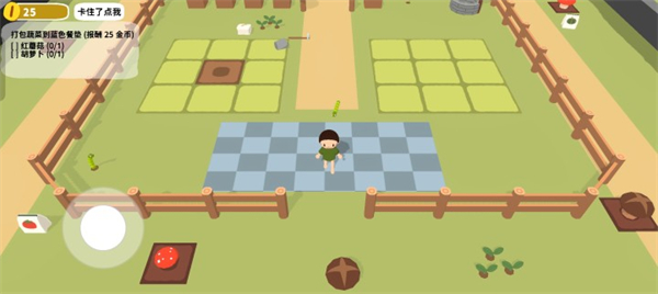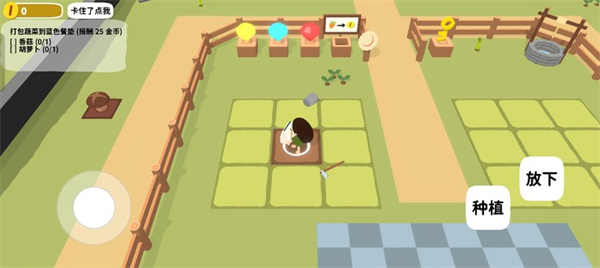2、首先,我们通过左侧的虚拟摇杆移动黏脚小人到菜地上,先锄地,点击操作即可。