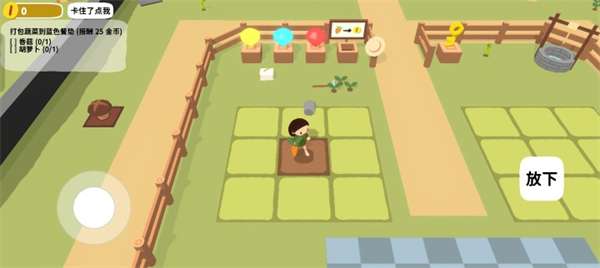 6、按任务要求,我们将胡萝卜放在菜地下方的蓝色餐垫上,OK,完成了其中一条任务。