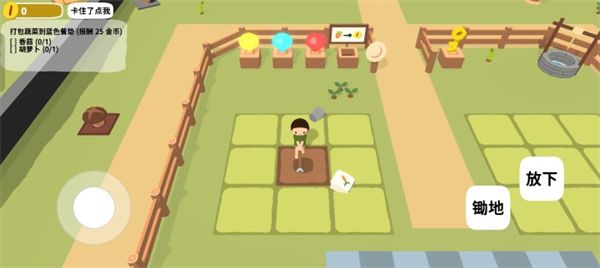 4、欢快的音乐伴你度过每个耕种时刻。1、在软件学堂下载安装本游戏,进入游戏如图所示,左上角为任务说明,完成即可获得25金币的报酬。