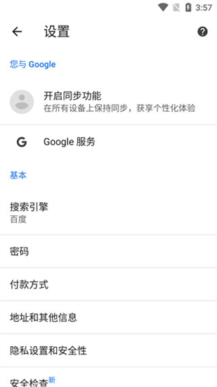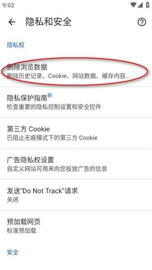 1、在谷歌浏览器app中打开设置,点击【隐私和安全】。
