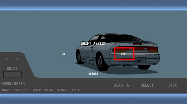 5、弹出“shift assist”(换档辅助),点击“OFF”(关闭)。