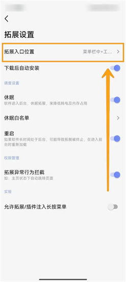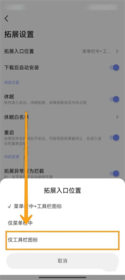 5、在拓展入口设置中选择【仅工具栏图标】,到此就设置完成了,有需要的朋友快去试试吧!