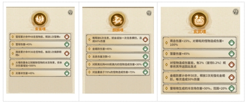目前推荐的灵宠是虺蜥,增伤+眩晕;乘黄,麻痹;雪龙驹,冰冻;鲲鹏,减疗;冰凰,眩晕。