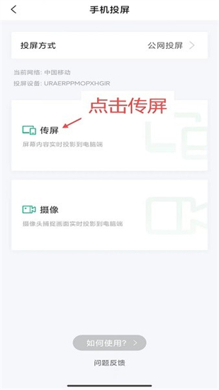 2、然后点击【传屏】,屏幕内容可以实时投影到电脑端。