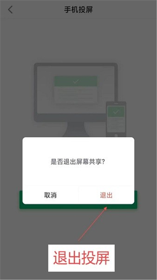 4、当您想关闭屏幕共享功能时,点击【结束传屏】,点击【退出】即可。