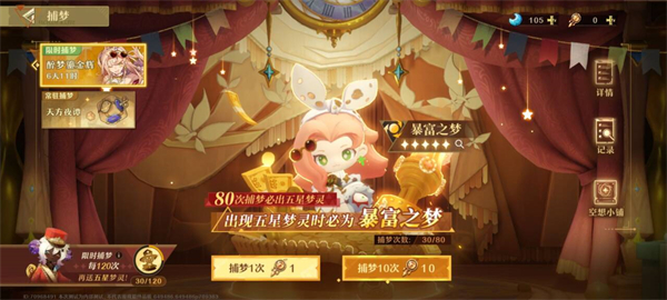 由于给的抽数还没有保底,也有人提前出。但是抽一只到两只就行,建议等后面的逍遥再抽。这个游戏,只要buff选好难度就会有所降低。在【醉梦鎏金辉】中,每10次捕梦必得一位四星或以上梦灵,每80次捕梦保底必得五星梦灵且必定为当期梦灵【暴富之梦·黛西】。每进行120次捕梦还可以额外获得一位随机常驻五星梦灵。【醉梦鎏金辉】的捕梦类型为限时捕梦,所有限时捕梦的保底次数和累计捕梦次数共享,但与其他类型捕梦活动的捕梦保底次数及累计次数相互独立计算,互不影响。
