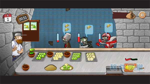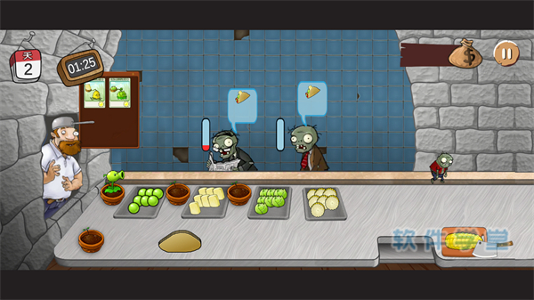 5、右下角那个小僵尸是小偷,会把你刚刚卖卷饼得到的金币偷走哦,所以别把金币留在柜台,要不然就白做了!