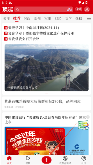 2、设置有各种频道,包括郑州、时政、经济、短视频、直播等,能够随时切换查看
