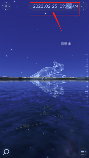 2、点击顶部能修改时间,观看不同时期到的星体。