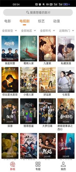 4、cc魔盒软件中的电视剧非常齐全,还支持按类型、地区、年代、近期热门进行筛选。点击顶部搜索框,还能搜索你想看的具体的影片。