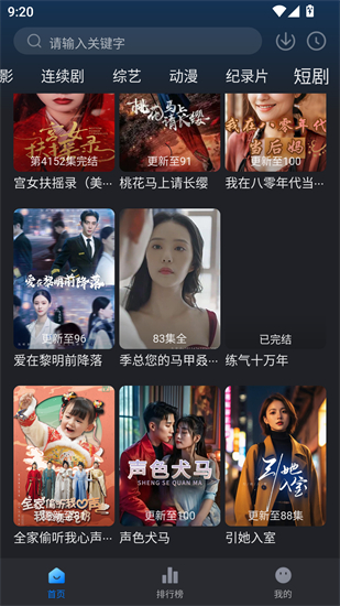 3、用户也可以直接在软件的顶部搜索栏直接输入关键字,点击搜索想看的剧。无法播放或投屏时,请切换播放源。