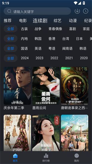 2、选择连续剧,筛选视频内容分类、地区分类、年份和电视剧的语言,找到想看的视频。