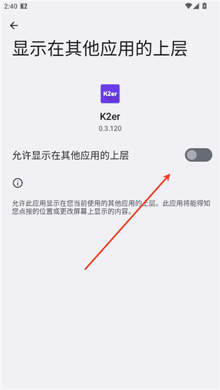 2、用户需要打开“允许显示在其他应用的上层”,随后返回软件