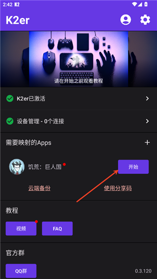5、回到主页之后,点击映射app右侧的“开始”进入游戏,之后就可以按照自己的情况添加映射了