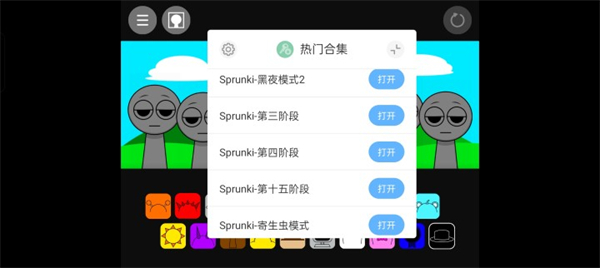 1、在软件学堂下载安装节奏盒子sprunki模组1~10阶段,点击绿钥匙图标可以查看并选择多种热门游戏模组。
