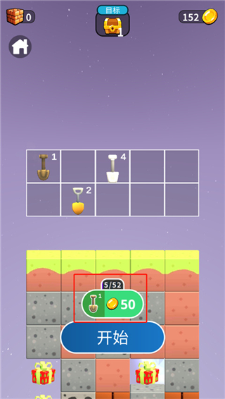 2、闯关之后可以使用金币购买铲子,也就是挖矿的道具