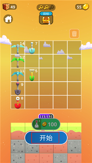 4、准备好之后就可以点击开始了,矿工模拟器铲子会自动挖掘土地