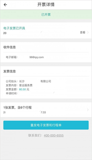 3、接着选择开发票的行程订单,填写相应的内容,例:抬头,即可开取发票。