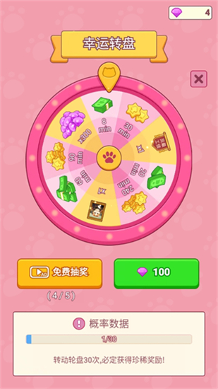 4、抽奖:搬砖之王猫咪打工模拟器玩家每天上线后,先参与幸运转盘抽奖,若幸运抽到“老板画饼券”,可让好友的产能减少30%,或获得“黄金砖块”直接兑换金币。