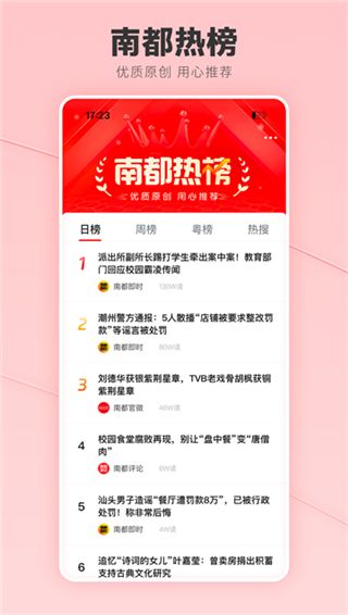 南方都市报官方版是一款移动的电子报纸阅读软件,用户可以在这里阅读来自全国各地的新闻资讯,各种方面的内容这里都有,如生活资讯,深度报道,体育竞技,科技生活等,用户可以选择自己感兴趣的内容进行阅读,而且用户还可以打开定位功能,成功定位之后,软件就会根据用户的位置来推送当地的新闻资讯,让你可以足不出户就了解到周边发生的事情。同时,软件还采用了大数据技术,能够根据用户近期的阅读类型来推送类似的资讯,让你可以了解更多感兴趣的内容。