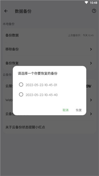 5、点击备份恢复可以查看已备份的数据,选择之后即可恢复数据