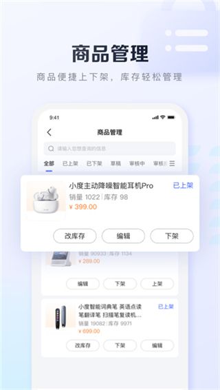 基木鱼开店app是一款由百度精心打造的电商移动办公软件,能够为电商商家替童一站式服务,从入驻平台到店铺管理,还加入了各种辅助功能,如实时提醒,数据分析等,能够很好的帮助商家完成工作,大大提升了商家的工作效率。软件拥有两大特殊模式,线上和线下,让商家经营的过程中不再需要依赖实体店,还可以从不同方面招揽一些潜在的客户,从而大大增加商家店铺的曝光率,让店铺的流量更多,从而增加商家的订单和收益,可以说非常的强大。