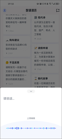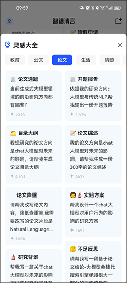 5、论文:开题报告、论文选题、目录大纲、论文综述、论文降重、致谢辞、论文点评、论文PPT。2、软件支持语音对话功能,你可以使用语音来输入自己的问题。