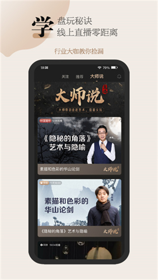 1、古物潮玩app提供了各种精彩的直播视频,可以在这里观看到更多精彩的鉴定视频